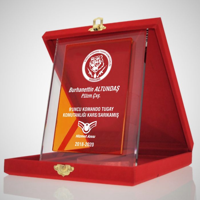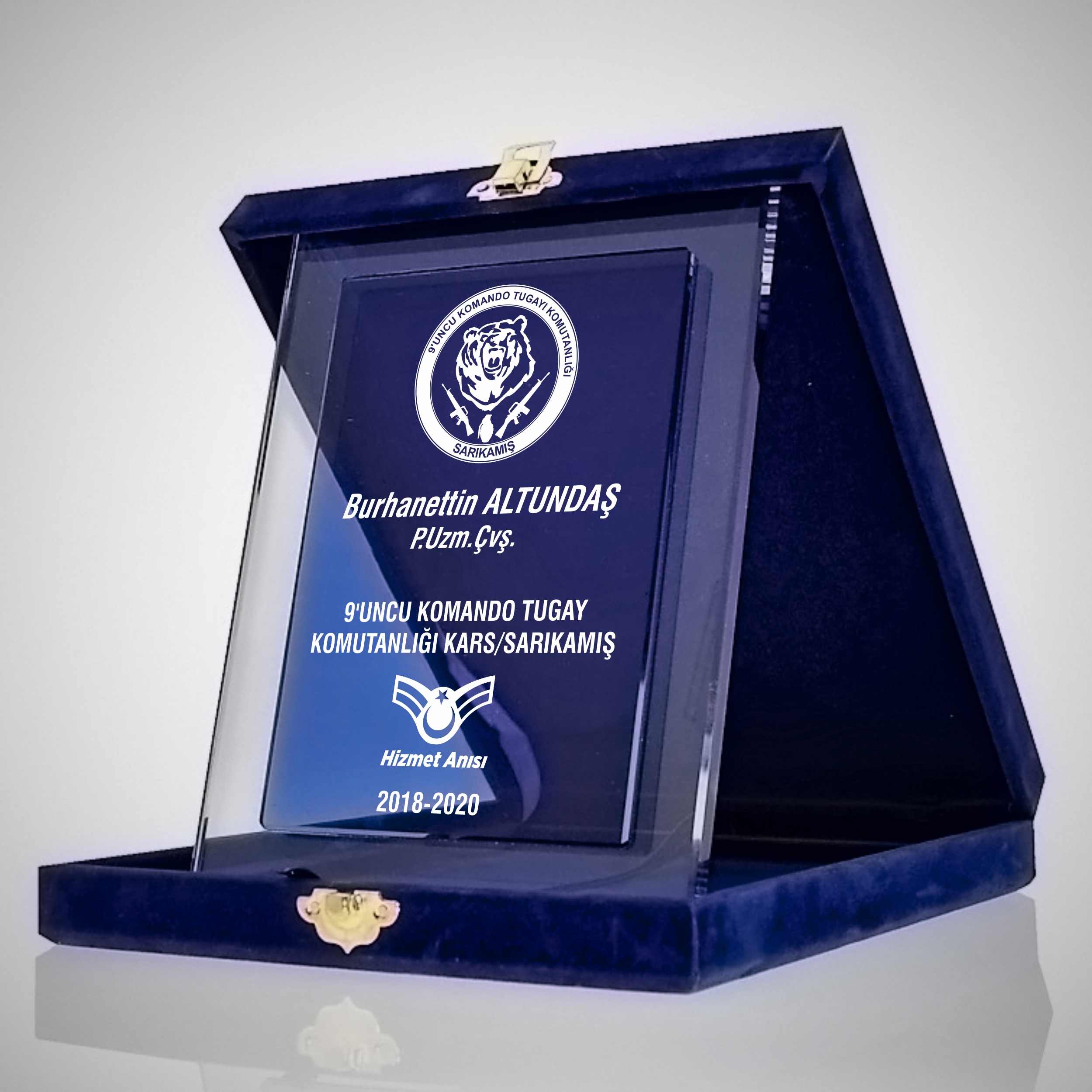 Komando Hizmet Anısı Albüm Dikey Kristal Plaket
