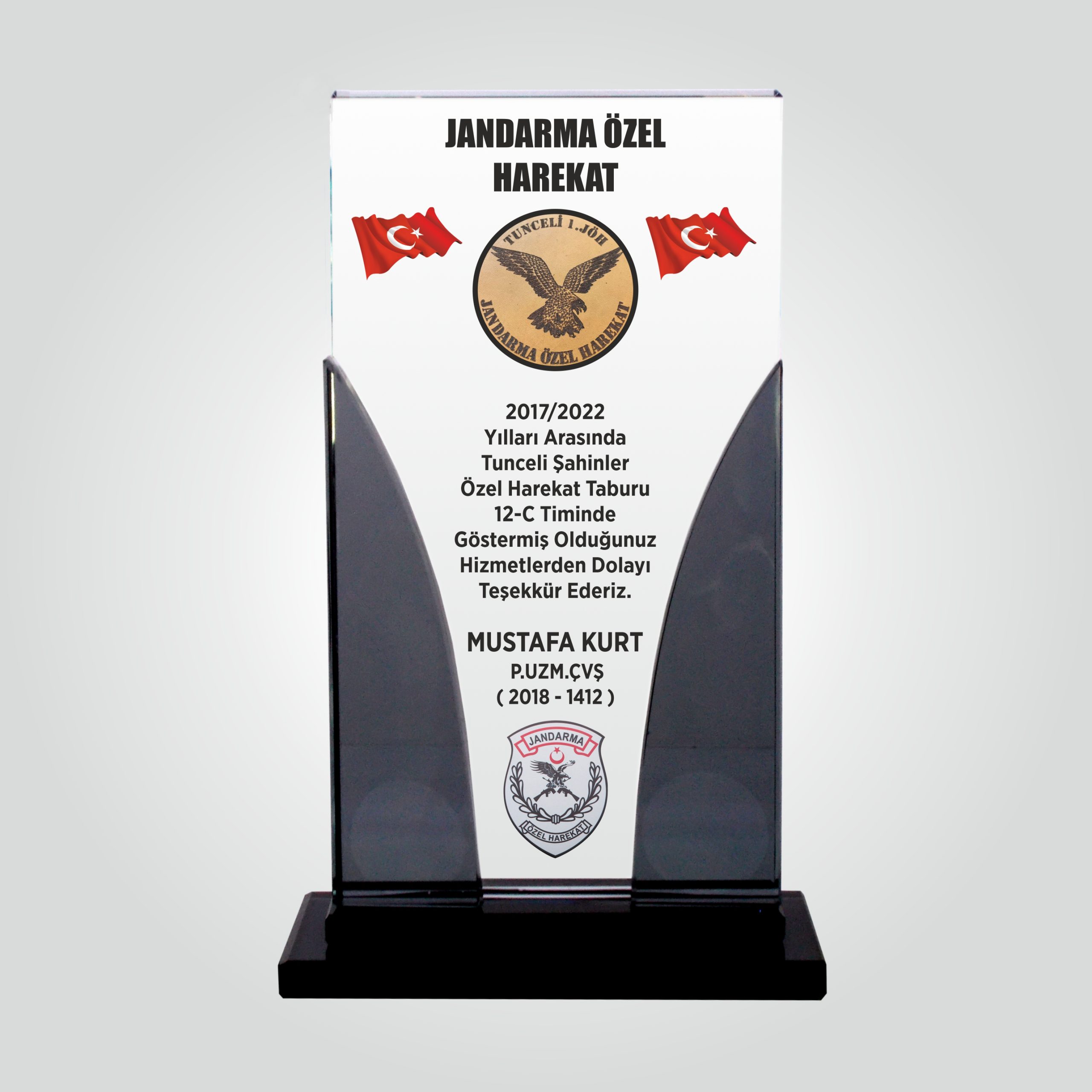 Kristal Cam Jandarma Komando Hizmet Anısı Plaketi