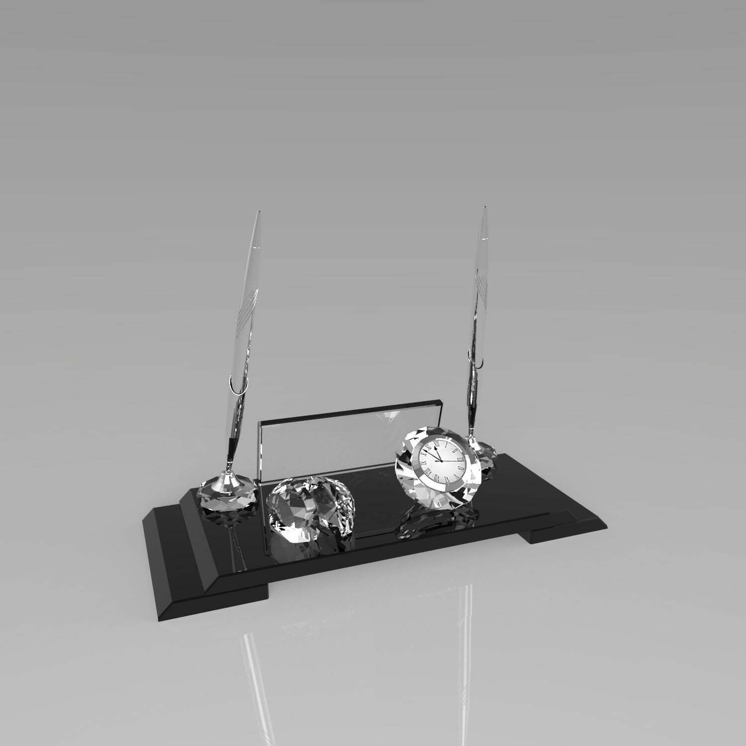 Kalemlikli Kristal Masa İsimliği – Siyah Cam