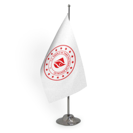 T.C. Sanayi ve Teknoloji Bakanlığı Masa Bayrağı 15×22,5 cm   Ürün Özellikleri : Masa Bayrağı 15×22,5 cm ebatlarında çift kat
