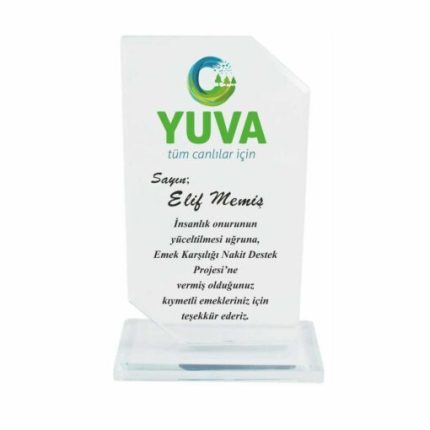 Şeffaf Kristal Opal Emek Teşekkür Plaketi
