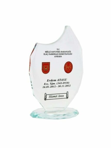 Şeffaf Kristal Cam Vazife Takdir Plaketi