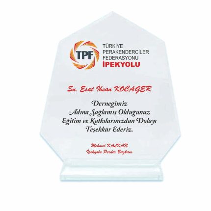 Şeffaf Kristal Anıt Fedarasyon Plaketi