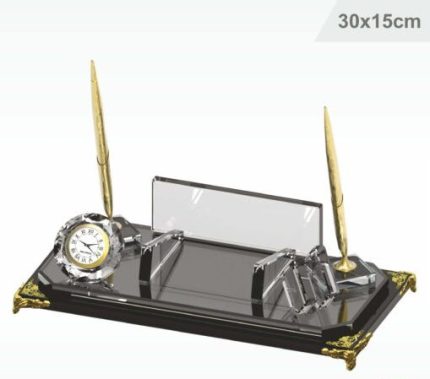 Kristal Cam Masa İsimliği Notluklu 30X15 cm